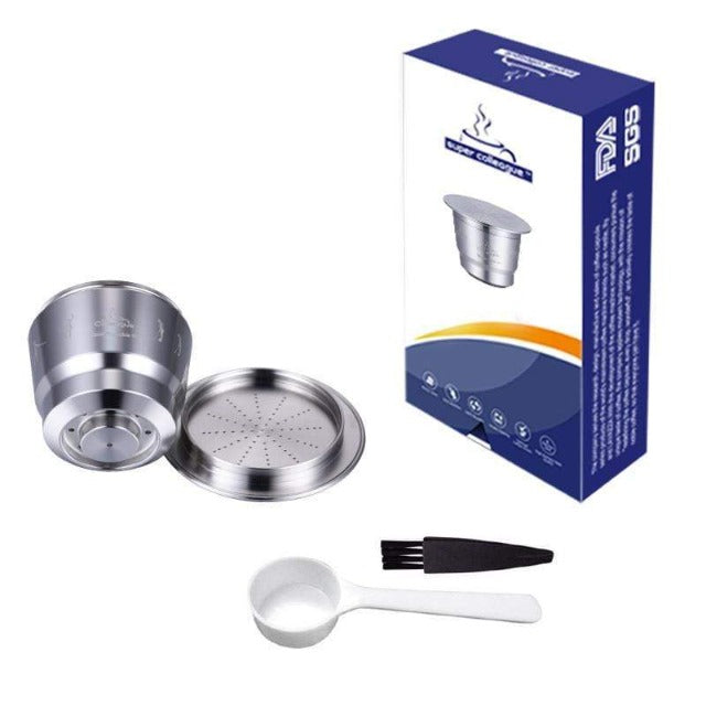 Ces capsules à Café sont rechargeables et sont donc réutilisables. Elles sont fabriquées en acier inoxydable ce qui leur confère une excellente durée de vie. De plus, vous ne risquez pas d'endommager votre machine puisqu'elles reprennent la forme des capsules originelles.