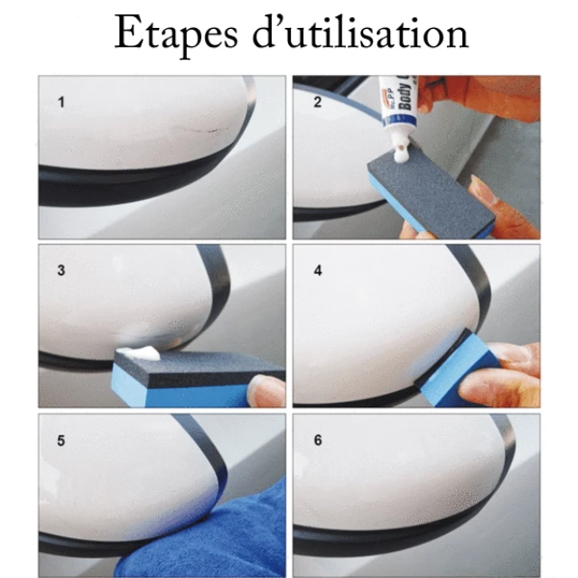 - Elimine les légères rayures de votre carrosserie, ainsi que toutes sortes d'imperfections tenaces tels que le goudron et la colle.