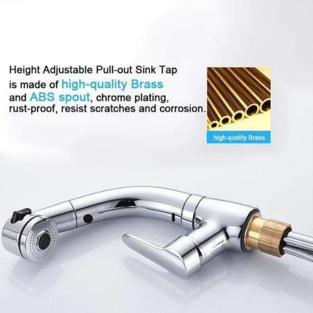 - Le robinet peut pivoter sur son axe à 360°, la hauteur est réglable