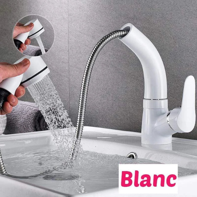 Une simple pression sur une touche vous permet de passer d'un jet d'eau fin à un jet de douche puissant, en plus , le robinet peut pivoter sur son axe à 360° ce qui facilite grandement votre travail en cuisine.